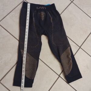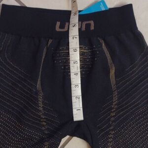 New with tag UYN Unleash Your Nature Cashmere Shiny 2.0 Bodycon base layer leggings 3/4 length (cropped) in color Celebrity Gold. Size S/M, stretchy material but please see measurements pictures and measurements to be sure of fit. Inseam: 18in Retail: $134 Made in Italy.
