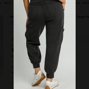 NWT Umgee Full Size Mineral Washed Elastic Waist Cargo Pants black - med