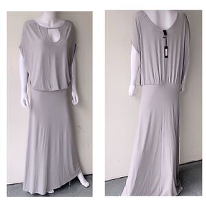 New with tags Unaluna Katia Maxi In Platinum, drop waist blouson keyhole