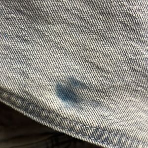 Jean jacket was bought online and shipped. Once I started the embroidery, I realized that there were ink stains on the new with tags jean jacket. I could not exchange and had put a lot of time into the design and embroidery itself. See last 3 pictures of marks on jacket. The marks are really not horrible and maybe even wash they will lighten.