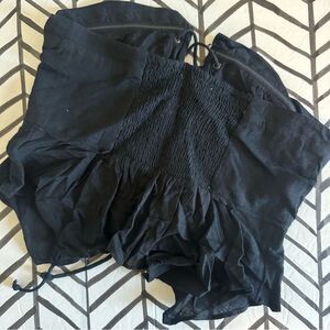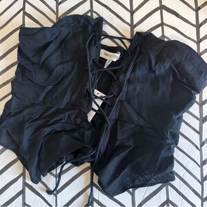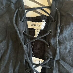 NWT Urban Outfitters Size M Black Strapless Ruffle Front Tie Lace Mini Top