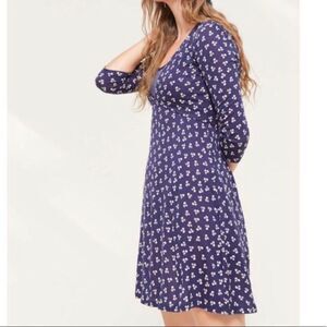 Soft-knit mini dress from UO with a plunging deep-v neckline and empire waist. Trimmed with 3/4-length sleeves and side-seam pockets. Find it only at Urban Outfitters.