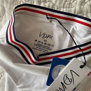 NWT VDM x Revolve Izzy High Waisted Bikini Bottoms White Red Blue XS