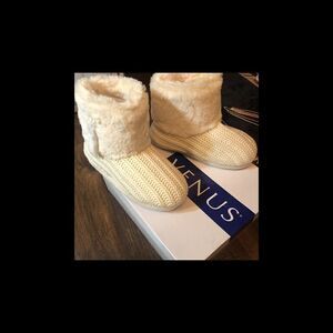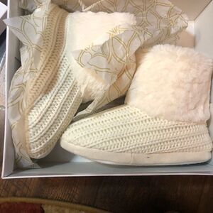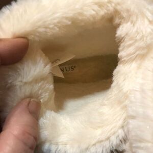 NWT Venus ivory slipper booties with fur trim and tassel . Size lg