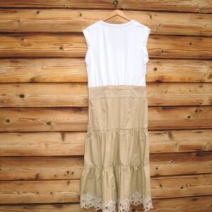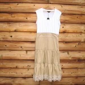In 100% cotton, the Amaia dress is the a warm-weather favorite. With a classic round neck, capped sleeves, and defined waist, this easy-to-wear style also features a tiered skirt with an eyelet hemline.