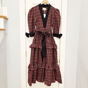 NWT Victoria Dunn Plaid Maxi Dress Red Tartan Plaid Ruffle Bow Holiday Size S
