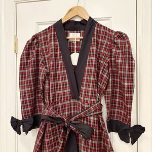 NWT Victoria Dunn Plaid Maxi Dress Red Tartan Plaid Ruffle Bow Holiday Size S Christmas Holiday