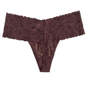 NWT Victoria Secret Mid Rise Purple Goddess Floral Lace Thong in Sise XL