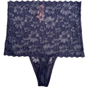 NWT Victoria Secret High Waist Thong Floral Lace Detail in Mesh Blue Size XS