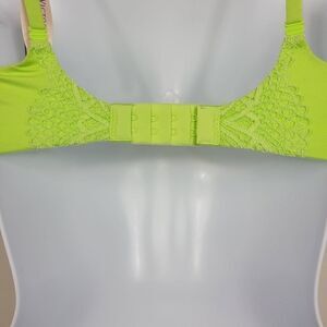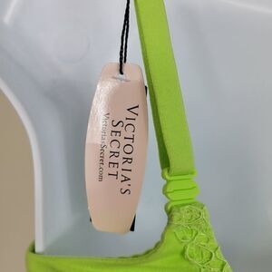 Enhance your lingerie collection with this Victoria’s Secret Body Bra in a stunning green shade, featuring a charming blue bow at the front. Designed for both comfort and style, this bra offers a flattering fit with its adjustable straps, smooth, supportive cups and back hook and eye closure. It has underwire and trimmed with beautiful lace. The unique color combination and delicate bow add a touch of elegance to your undergarment collection.