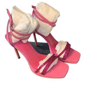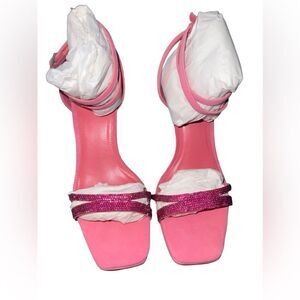 Sparkly jewels while the adjustable wrap strap around the ankle highlights your gorgeous gams