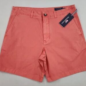 NWT Vineyard Vines Mens 7 in. Island shorts in papaya passion. Features button & zipper closure, front slash pockets, rear buttoned pockets, logo patch on back waistband, belt loops.