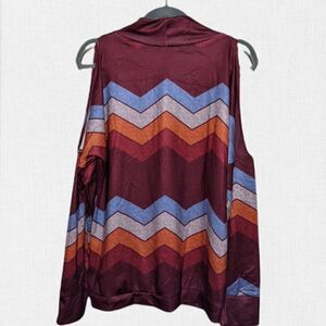 Women's Medium Long Sleeve Color blocked Chevron Top. Shoulderless with turtle neck