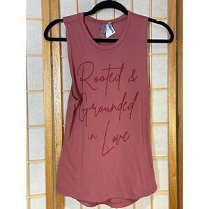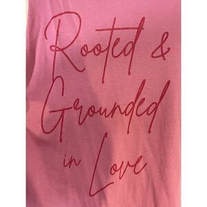 Absolutely adorable sleeveless tee from Vow'D. Size XS. Reads Rooted and Grounded in Love. 65% polyester, 35% cotton. Machine washable. Made in China. Excellent condition. Nonsmoking home.