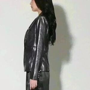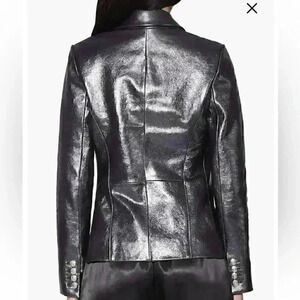 NWT WALTER BAKER Marley Double Breasted Metallic Leather Blazer SZ M in gunmetal
