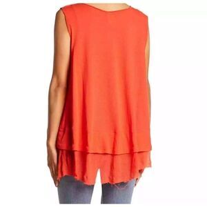 NWT WE THE FREE Hot Peachy Sleeveless Tiered Frayed Hem Oversized Tank Size XS. The has a deep v neckline and a high low hem. This is new with tags.