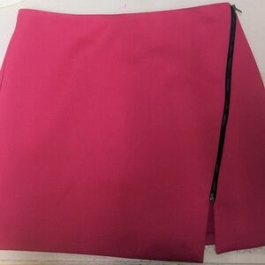 NWT~WELLS GRACE Fuchsia Pink Asymmetrical Zipper Short Modern Mini Skirt~M