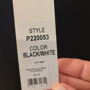 NWT jersey knit black wide-leg pants with a sleek design. White band at bottom and waist. Perfect for any occasion.