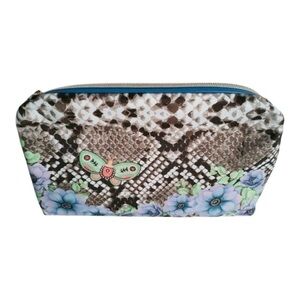 Estee Lauder-snake skin print cosmetic bag, measures 9x6 inches