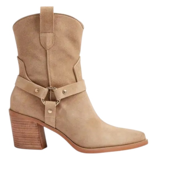 Chic Western-inspired style meets modern comfort! These Dolce Vita Kenzen boots feature premium dark taupe suede, a stylish gold-tone harness ring, and a stacked block heel that elevates every outfit.