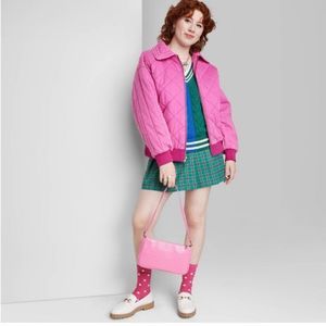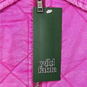 New with tags, never worn. Wild Fable bomber jacket Size Large. Diamond stitch quilted design. Ribbed hem and cuffs. Two waist pockets. Front collar with full-length zipper. Color on tag is “Ravishing Pink.” Shell- 100% Cotton