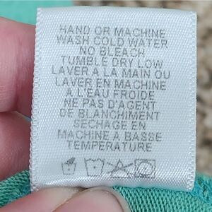 Fabric Care Instructions: Hand or machine wash cold water, no bleach, tumble dry low
