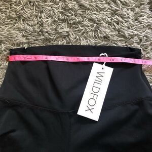 NWT Wildfox The Aerglo Legging is a full-length performance legging with a logo trim stripe and an inner hidden pocket (stash a key, your lip balm, or whatever). Size large. Color: Black.
