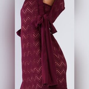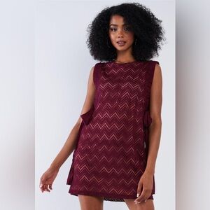 NWT-Wine Crochet Sleeveless Lined Mini Dress W/ Ribbon Draw String Tie