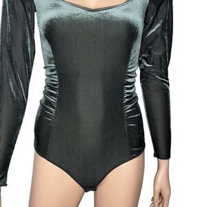 $374 NWT Wolford Esmeralda String Body. Size XS. Color Dark Green. Striped Velvet, Long Sleeve. This string body is easy on the eyes with its gentle material and draped front-design. Super soft striped velvet features a lined front part. This body blends timeless material with a modern sensibility for a look that brings out the best of both. Form fit / Lightweight striped velvet / Lined front part / Long sleeves / Heart-shaped neckline