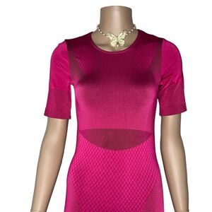 $287 NWT Wolford Leeloo Mini Dress. Size M. Color Heartbeat/Black - Pink shades. This rhomb-patterned dress with a subtle shine creates an energetic appearance that perfectly suits women in motion. The short sleeves, crew neckline and flexible material will ensure exceptional wearability no matter where the day takes you. Leeloo is the perfect choice when you want to look formal in settings that may call for light activity. Shiny look. Short sleeve. Crew neckline. Knitted-in rhomb pattern. 96% polyamide, 4% elastane. Please check my closet for pink matching socks.