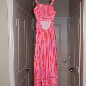 NWT-Women Striped Maxi Dress Spaghetti Strap Cutout Ruffle Long Dress Size Small