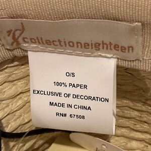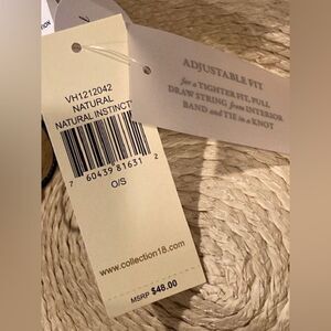 NEW with tags Women’s 100% Paper Wide-Brim Sun Hat by the brand Collection 18. Light white / beige color and super stylish for summer parties. Great for keeping the sun away. Accessorized with a cute bow as well. Adjustable fit as you can get a tighter fit by pulling the drawstring from the interior. Thanks for looking :)