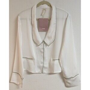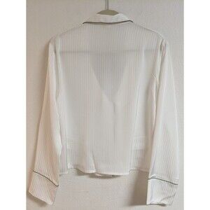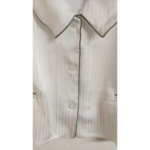 The NWT Women's NAP Loungewear "The Lazy Cat" Pj Set in White is a stylish and comfortable pajama set perfect for any season. The set includes a long-sleeve top with a striped pattern, a collared neckline, and button closure for a classic look. Made of lightweight satin polyester, this 2-piece set is easy to care for with machine washable fabric. Its both practical and fun for lounging around the house.