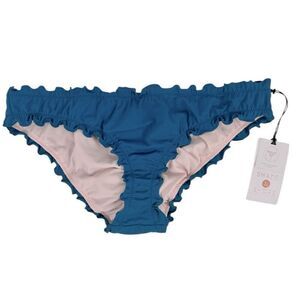 NWT Womens Shade & Shore Teal Ruffled Low Coverage Cheeky Bikini Bottom - Sz M