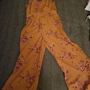 Women's Floral Print Sleeveless V-Neck Side Button Cropped Jumpsuit - Xhilaration™ Yellow