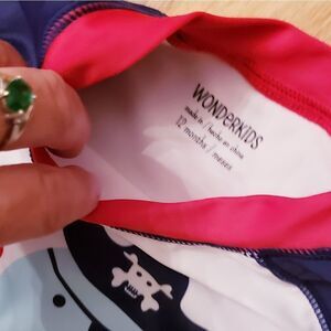 New with tags. Cute 'Ahoy Matey" Octopus design short sleeved rash Guard. 50+ SPF.