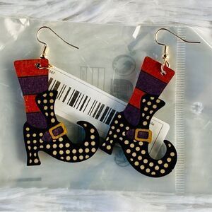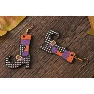 NWT Wooden Halloween Wicked Witch Colorful Boot Dangle Earrings