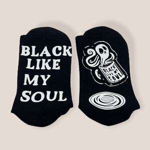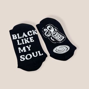 NWT Wool + Pepper Co. BLACK LIKE MY SOUL Bottom of Sock Crew Socks