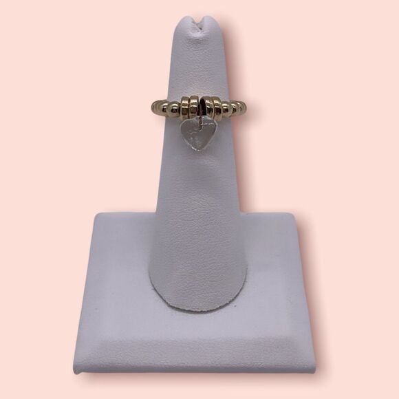 NWT Wool + Pepper Co. Glass Heart Beaded Ring - Gold & Clear Glass