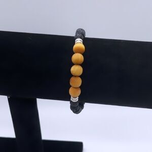 (1) Elegantly Crafted Mens Black Lava & Wood Beaded Bracelet.