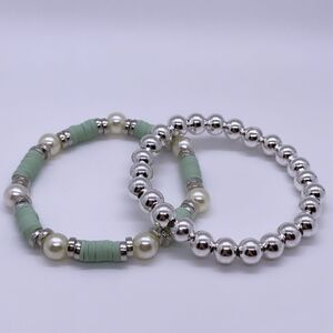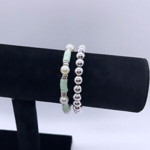 NWT Wool + Pepper Co. Sage & Silver Bracelet Stack