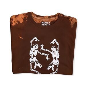 NWT Wool + Pepper Co. Tie Dye Dancing Skeletons Boxy Boyfriend Tee