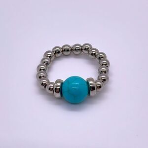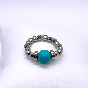 (1) Elegantly crafted Turquoise + Silver Beaded Ring