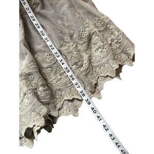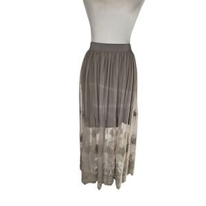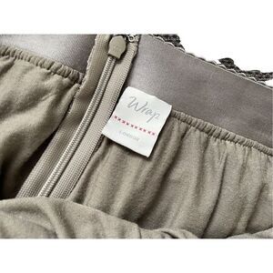 NWT Wrap London mini/midi skirt with long, ornate lace overlay. Zips up the back. So hip and elegant! Taupe color.