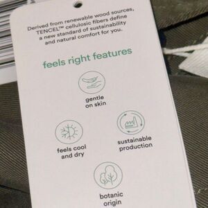 • Material: 100% Tencel (lyocell fibers derived from sustainable sources).