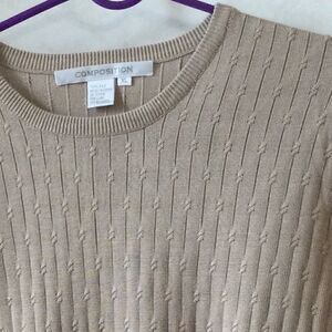 NWT Composition, XL Camel knit sweater, pretty knit patter, crew neck 40” bust, 25” long. Cozy, warm, Lux piece.