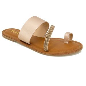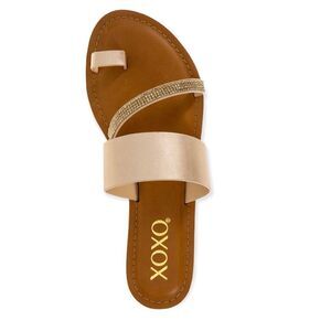 XOXO Romilia casual comfort sandal with jeweled strap and toe ring detail