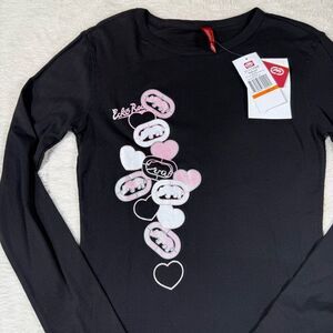 This black long sleeve tee from Ecko Red is giving 2005 Myspace profile pic in the bathroom mirror. The bubblegum pink and white heart graphics with the chain link logo scream soft but sassy—like the kind of girl who wore lip gloss with a side ponytail, shopped at Against All Odds, and made custom ringtones for her Motorola Razr. It’s equal parts edgy and adorable, like Baby Phat’s sweet little cousin who’s obsessed with Lisa Frank but still rocks hoop earrings and Jordans.