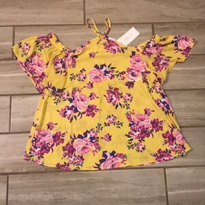 NWT Yellow Floral Flowy Cold Shoulder Top. Top size M. Make an offer or bundle for more savings! 💖