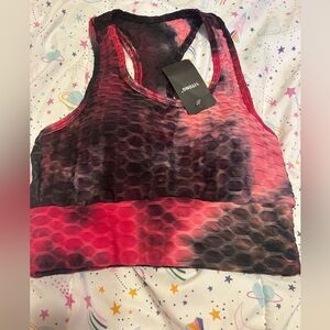 NWT Yitong Pink and Black Geometric Sports Bra with Racerback